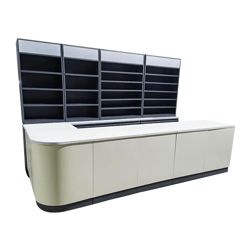 Napakagandang disenyo, lubos na ergonomic, ginagawang komportable at kumportable ang mga customer sa pag-checkout. Malawak at patag ang countertop, na ginagawang maginhawa para sa mga cashier na mabilis na mag-scan ng mga code at mag-settle ng mga account, gayundin para sa mga customer na maglagay ng maliliit na item na pansamantala nilang binili, tulad ng chewing gum, mint candies, at iba pang impulsive consumer goods.